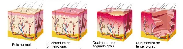 a) Profundidade - queimaduras de 3º grau afeta estruturas e órgãos profundos abaixo do tecido; produz coagulação sanguínea, toxinas, etc.