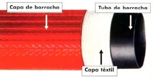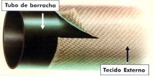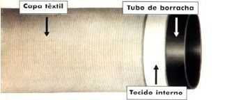 As mangueiras do tipo lona dupla são constituídas de um tubo de borracha envolvido por duas camadas têxteis sobrepostas.